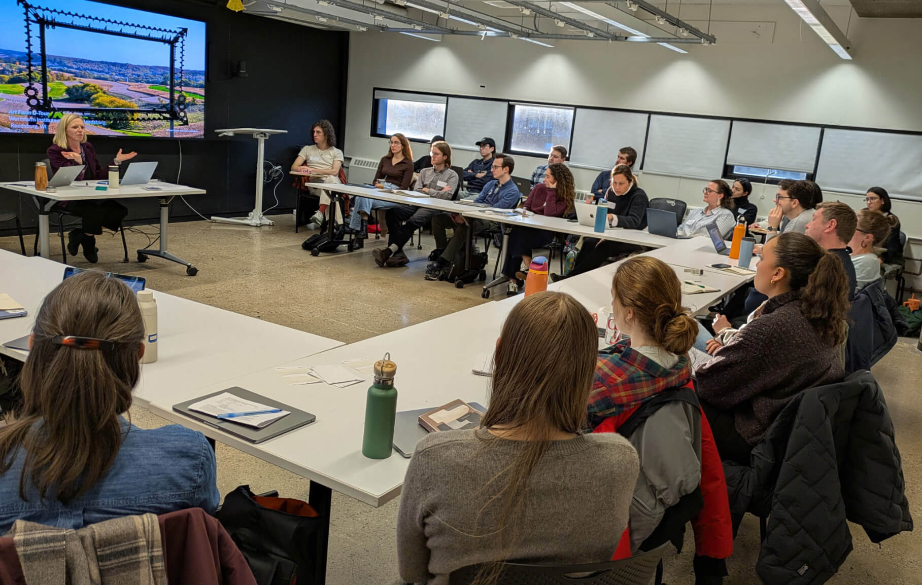 During J-Term, Jen Hughes ‘26 and Jenn Chang, Harvard Kennedy School Culture and Civil Society Program Director and GSE Adjunct Lecturer, joined forces to teach the two-day course “Cultural Strategies for Planners and Policymakers.” The 29 participants from across the university—GSD MUP and MDes students, TH Chan School of Public Health and Graduate School of Education students, and undergraduates—were eager to explore connections between a thriving arts ecosystem, healthy communities, and public policy.